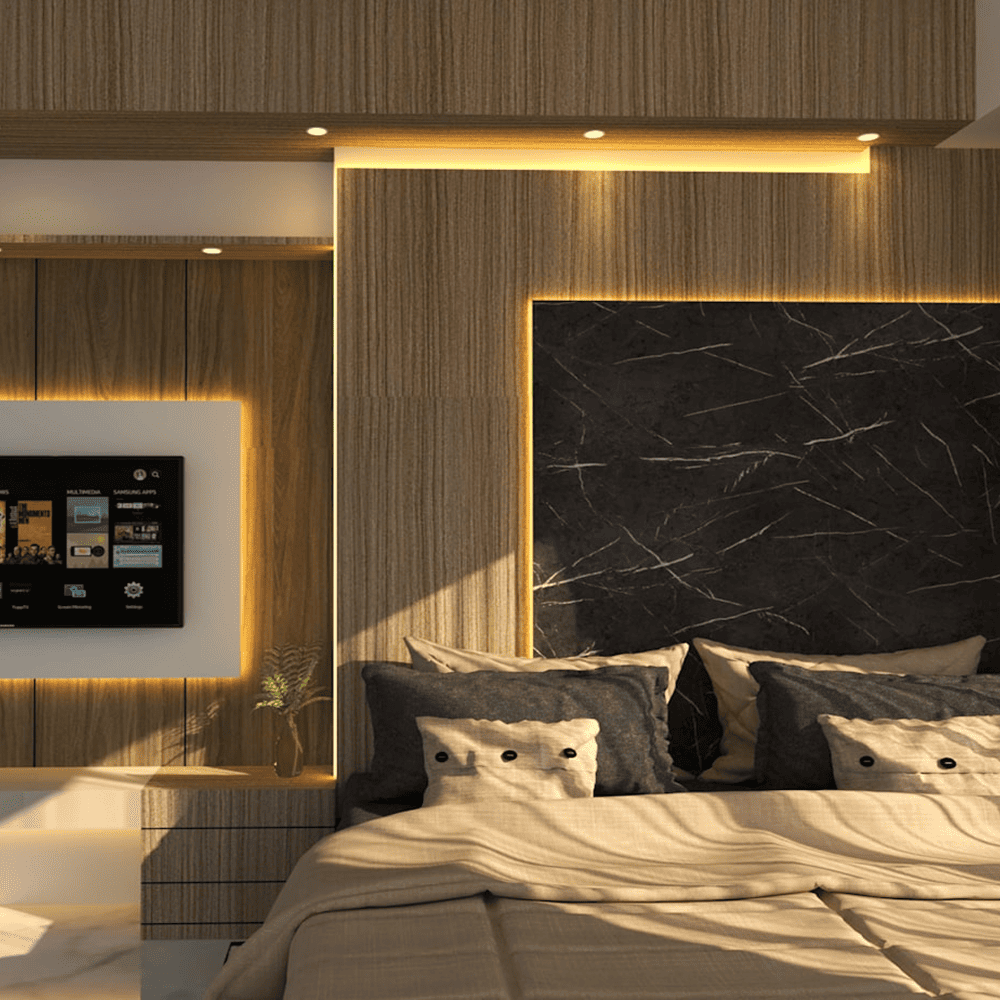 現代化的室內照明設計不再侷限於傳統牆面開關。透過 手掃式控制器 隱藏在邊几下方,或是整合智慧音箱進行語音控制,讓您可以根據心情調整明暗。例如,睡前半小時進入「舒壓模式」,關閉天花板主光,僅保留床頭後的間接照明燈條與床底感應燈,透過低角度、低色溫的佈光,引導身體進入休息狀態。這種「儀式感」的燈光切換,是讓生活從平凡轉向精緻的關鍵。